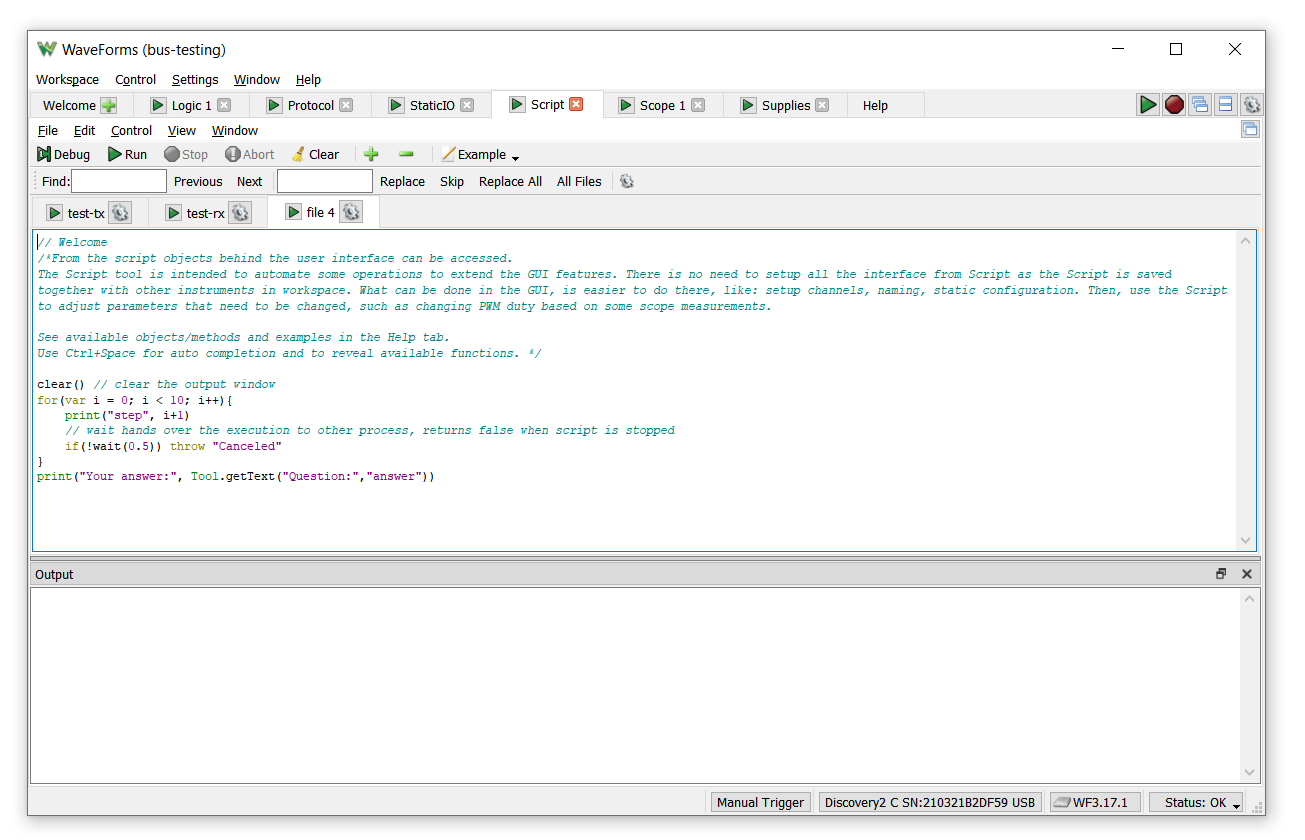 One of the most interesting features of this device & software combo is an ability to automate it using JavaScript. This allows you to orchestrate multiple instruments together to run a test that, for example, requires some I2C communication before taking the measurement.